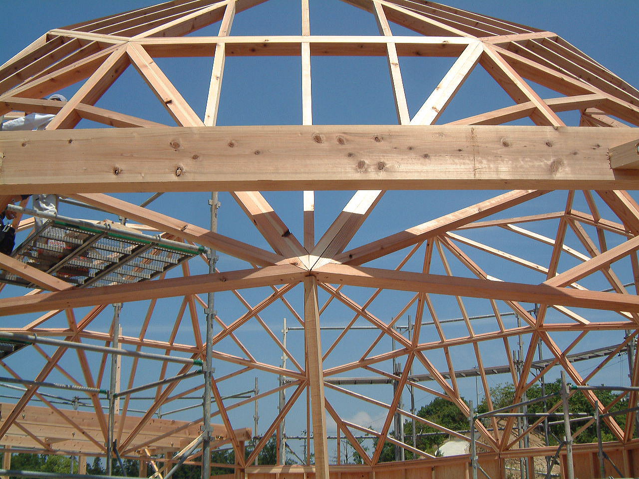 ジオデシック・ドーム構造ならではの独自の工法は合理的でスピーディですが、当社ならではの精度の高いフレーム技術には伝統的木造建築の匠の技法が生かされています。